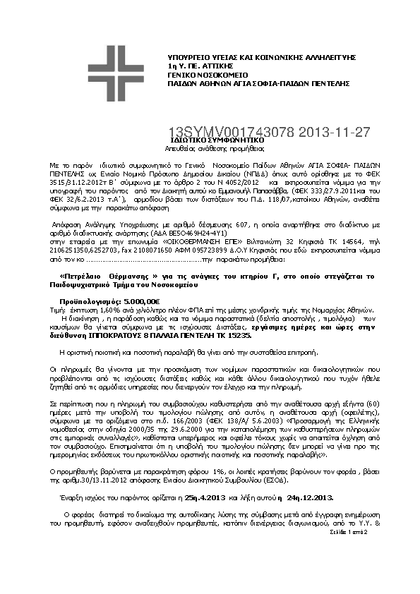 9. ΠΡΟΜΗΘΕΙΑ ΠΕΤΡΕΛΑΙΟΥ ΘΕΡΜΑΝΣΗΣ ΓΙΑ ΠΑΙΔΟΨΥΧΙΑΤΡΙΚΗ ΚΛΙΝΙΚΗ