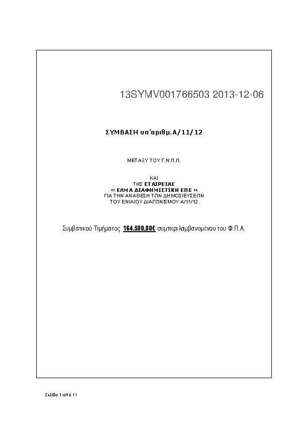 1. ΔΗΜΟΣΙΕΥΣΗΣ ΕΝΙΑΙΟΥ ΔΙΑΓΩΝΙΣΜΟΥ Α/11/12
