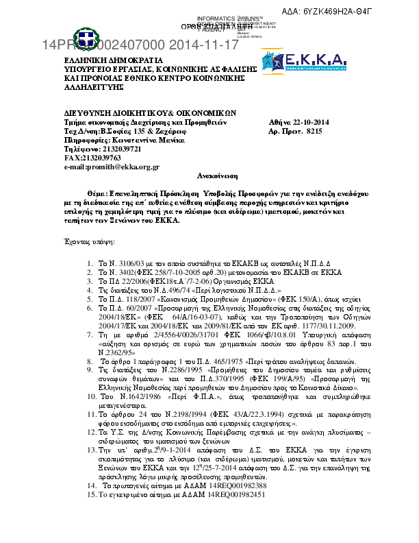 Αναζήτηση σε προκηρύξεις και συμβάσεις για: