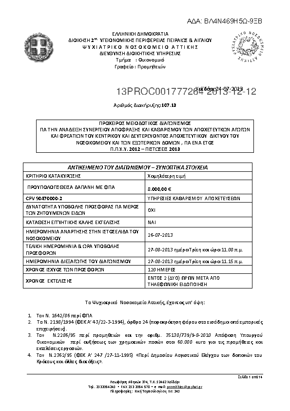 Αναζήτηση σε προκηρύξεις και συμβάσεις για: