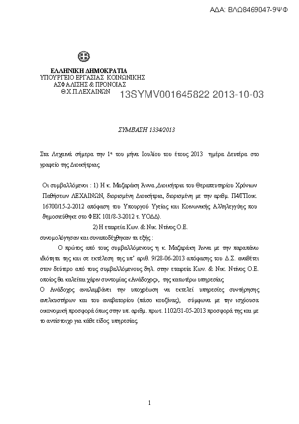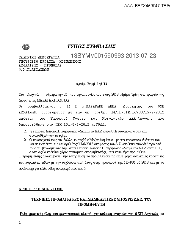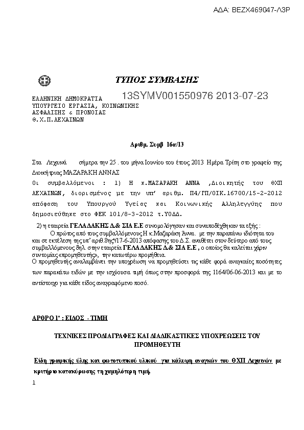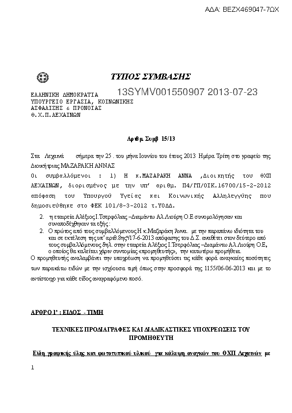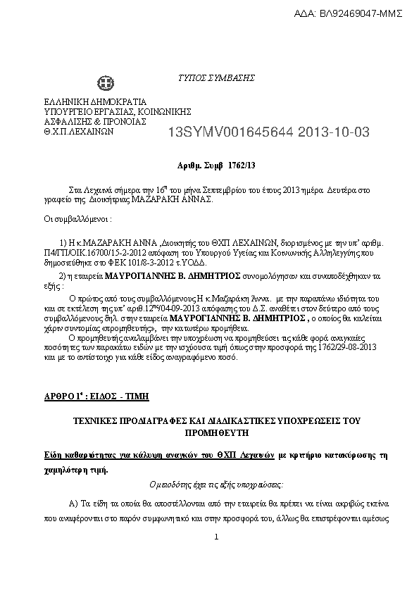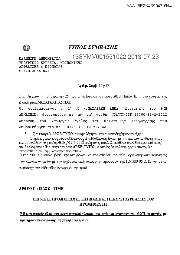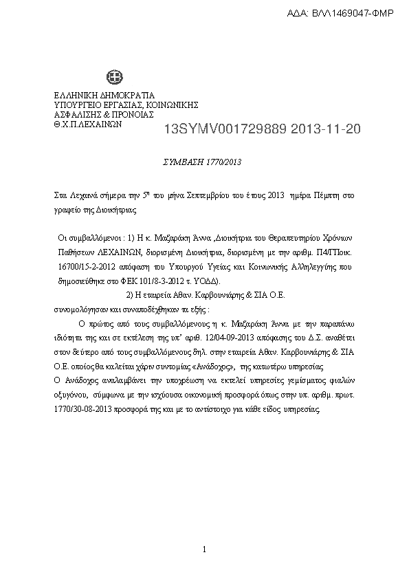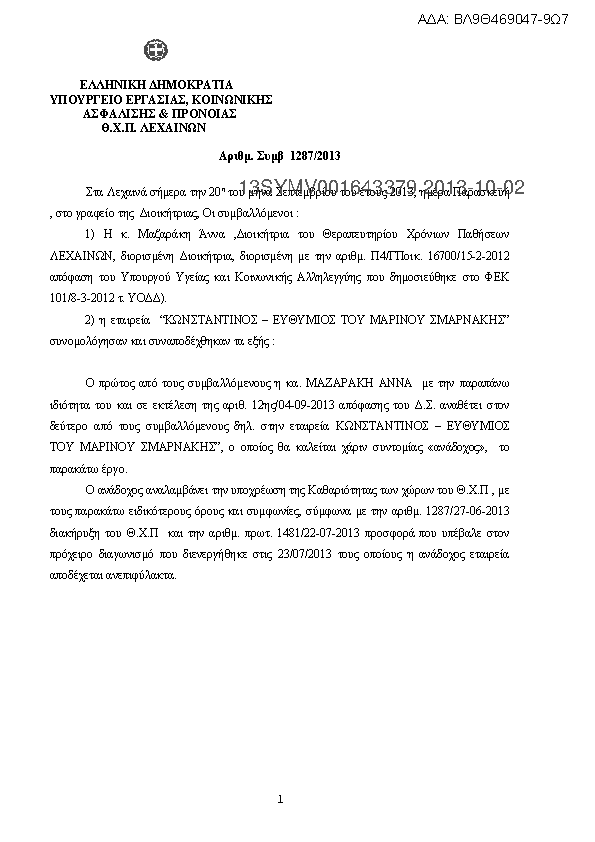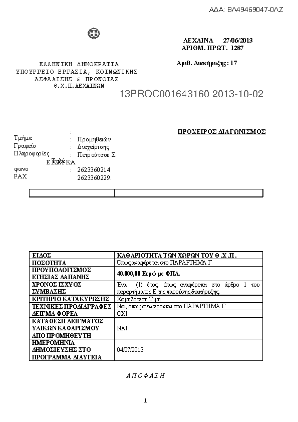 1. ΔΙΑΚΗΡΥΞΗ ΥΠΗΡΕΣΙΩΝ ΚΑΘΑΡΙΟΤΗΤΑΣ ΤΟΥ Θ.Χ.Π ΛΕΧΑΙΝΩΝ .