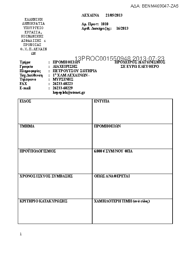 Αναζήτηση σε προκηρύξεις και συμβάσεις για: