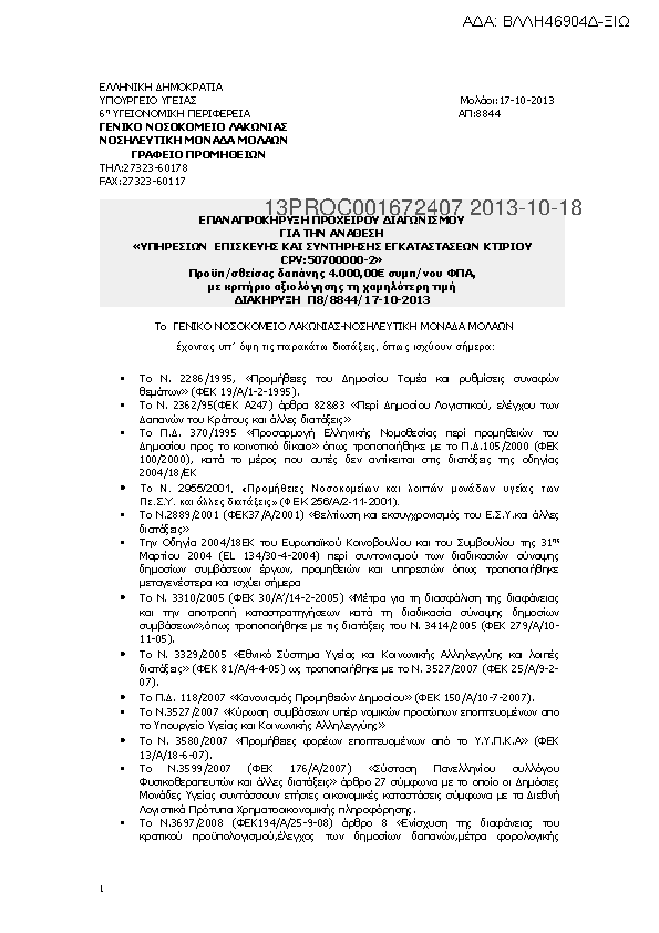Αναζήτηση σε προκηρύξεις και συμβάσεις για: