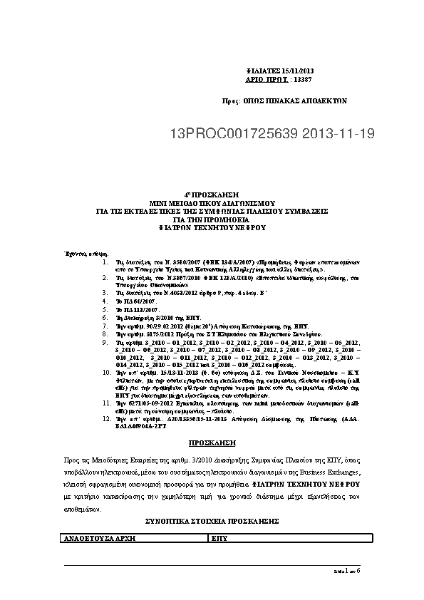 8. ΠΡΟΣΚΛΗΣΗ ΜΙΝΙ ΜΕΙΟΔΟΤΙΚΟΥ ΔΙΑΓΩΝΙΣΜΟΥ ΠΡΟΜΗΘΕΙΑΣ ΦΙΛΤΡΩΝ ΤΕΧΝΗΤΟΥ ΝΕΦΡΟΥ
