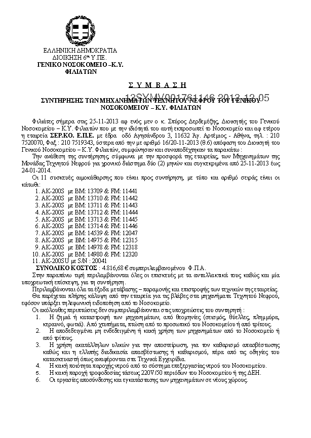 4. ΣΥΝΤΗΡΗΣΗ ΤΩΝ ΜΗΧΑΝΗΜΑΤΩΝ ΤΕΧΝΗΤΟΥ ΝΕΦΡΟΥ ΤΟΥ Γ.Ν.