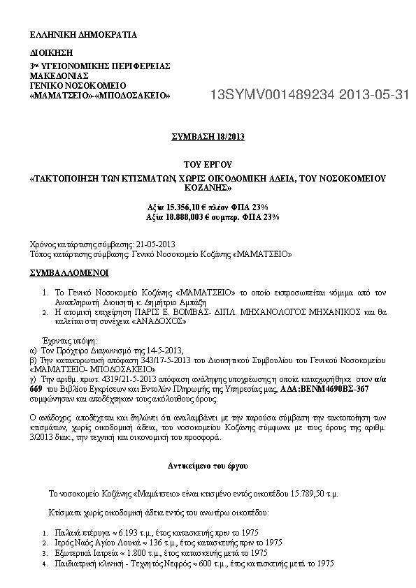 10. ΤΑΚΤΟΠΟΙΗΣΗ ΤΩΝ ΚΤΙΣΜΑΤΩΝ ΧΩΡΙΣ ΟΙΚΟΔΟΜΙΚΗ ΑΔΕΙΑ ΤΟΥ ΝΟΣΟΚΟΜΕΙΟΥ ΚΟΖΑΝΗΣ