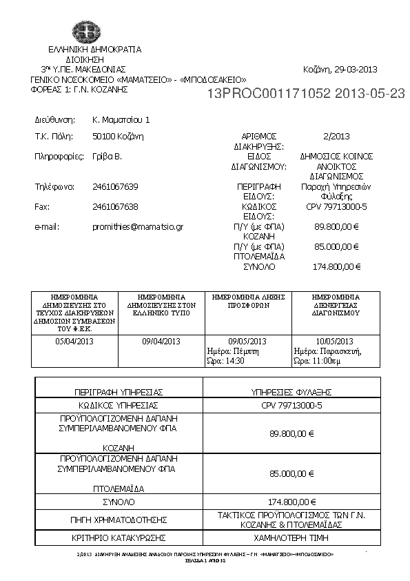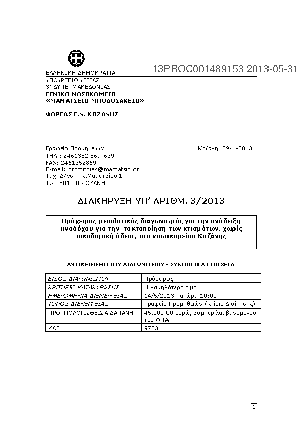 Αναζήτηση σε προκηρύξεις και συμβάσεις για: