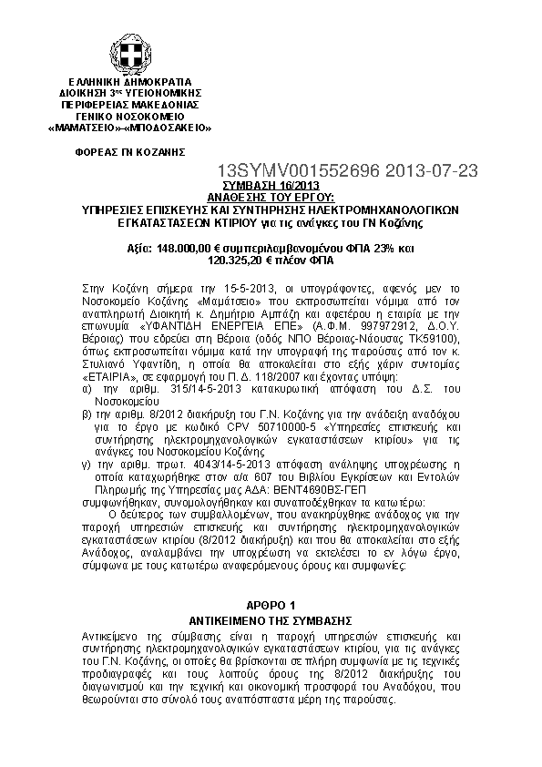 1. ΥΠΗΡΕΣΙΕΣ ΕΠΙΣΚΕΥΗΣ ΚΑΙ ΣΥΝΤΗΡΗΣΗΣ ΗΛΕΚΤΡΟΜΗΧΑΝΟΛΟΓΙΚΩΝ ΕΓΚΑΤΑΣΤΑΣΕΩΝ ΚΤΙΡΙΟΥ