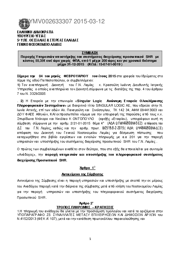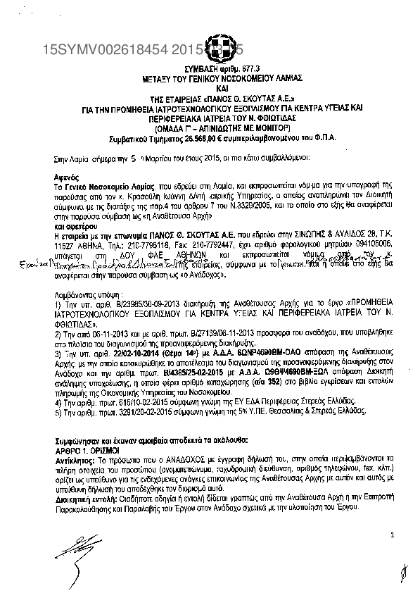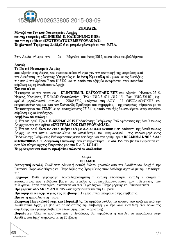 3. ΣΥΜΒΑΣΗ ΠΡΟΜΗΘΕΙΑΣ ΓΙΑ ΣΥΣΤΗΜΑ ΕΜΒΡΥΟΥΛΚΙΑΣ