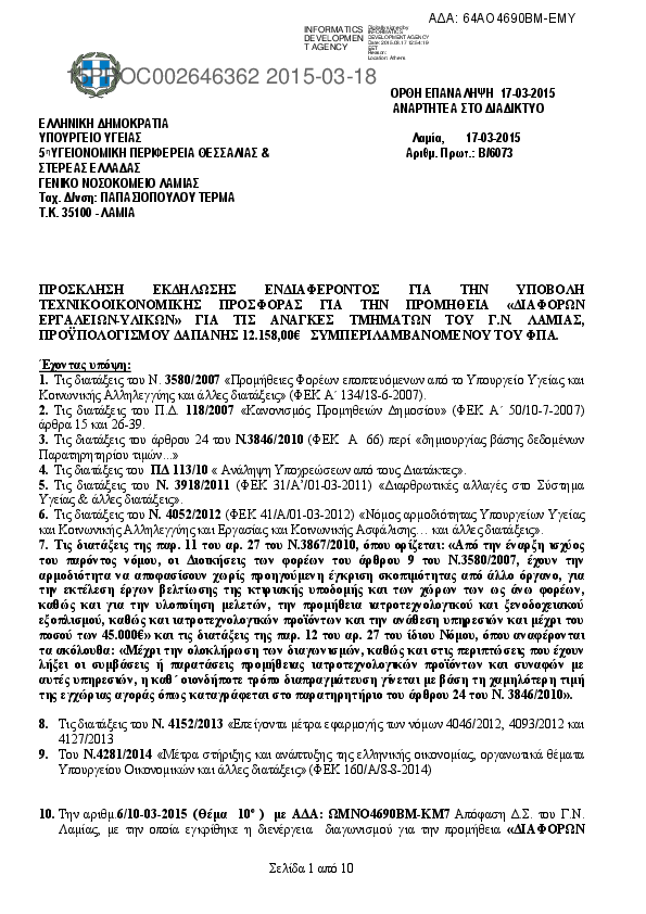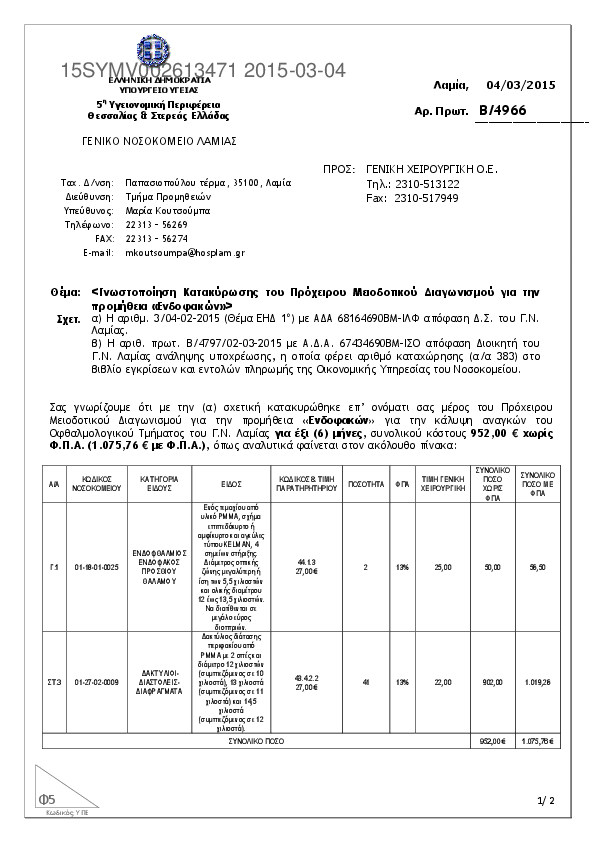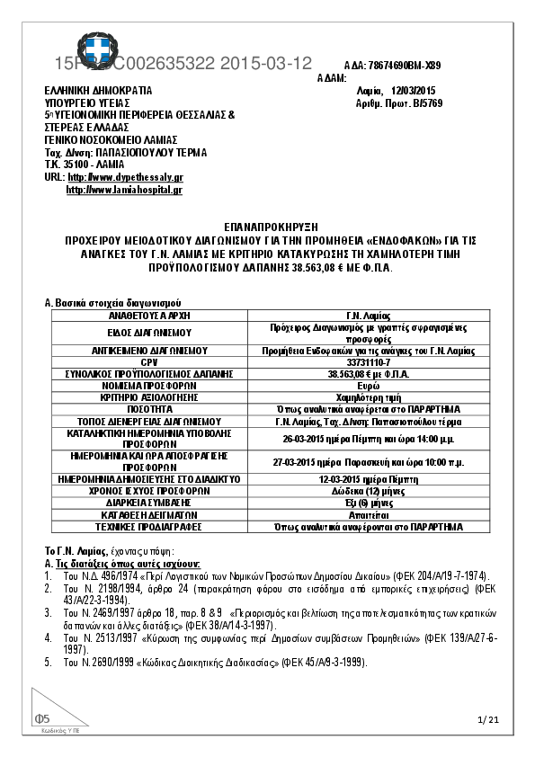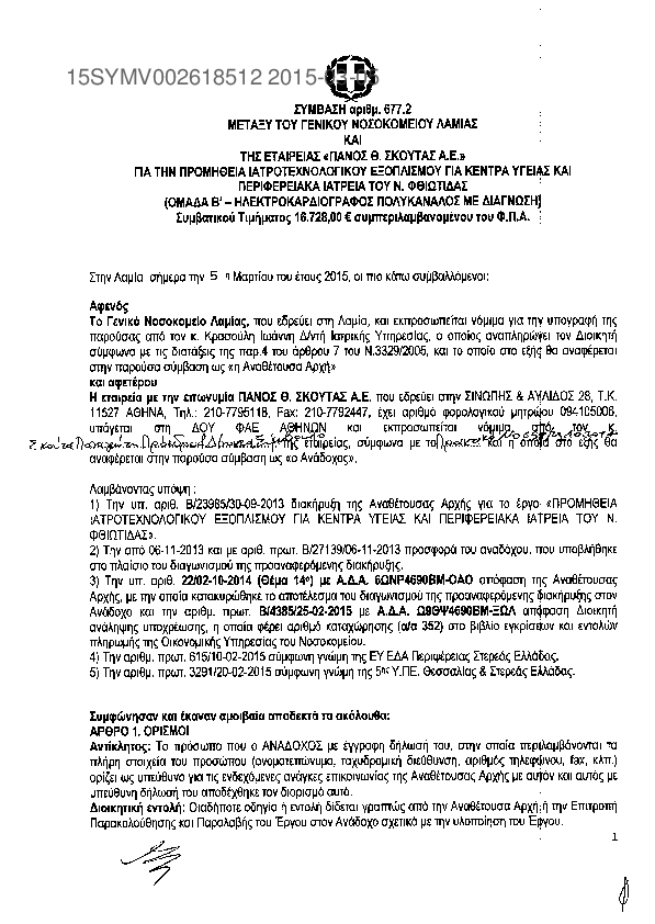 5. ΠΡΟΜΗΘΕΙΑ ΙΑΤΡΟΤΕΧΝΟΛΟΓΙΚΟΥ ΕΞΟΠΛΙΣΜΟΥ ΓΙΑ Κ.Υ.&Π.Ι. Ν. ΦΘΙΩΤΙΔΑΣ (ΕΣΠΑ 2007-2013)