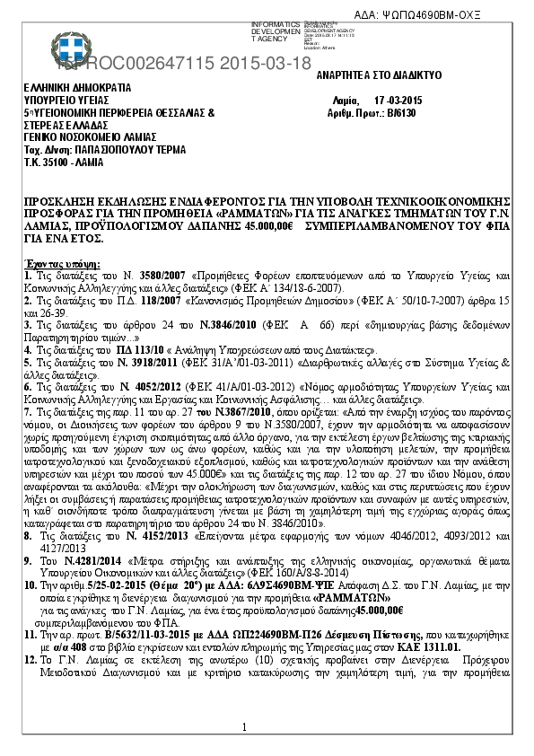 Αναζήτηση σε προκηρύξεις και συμβάσεις για: