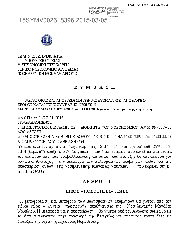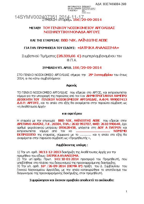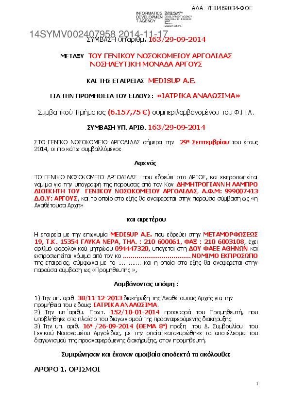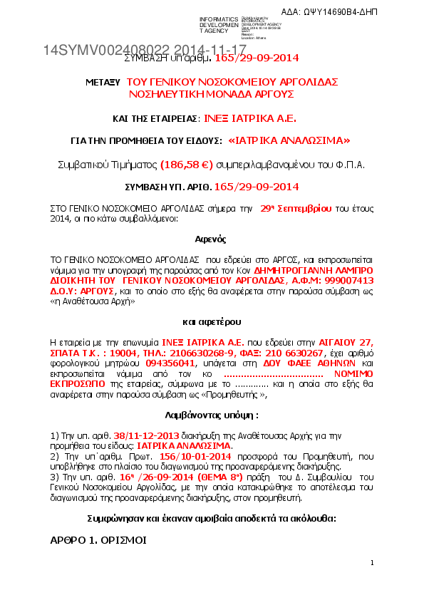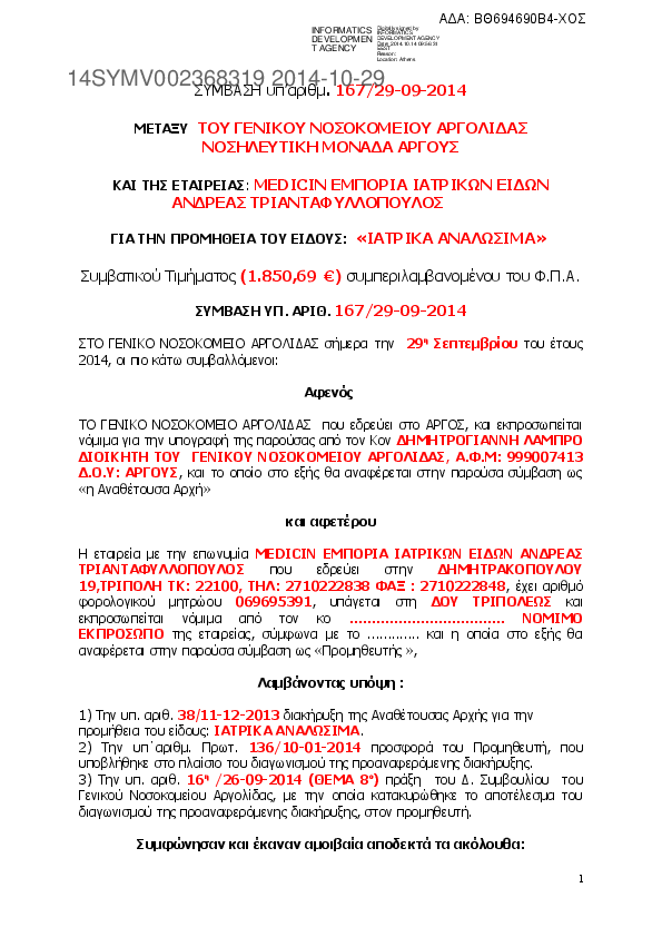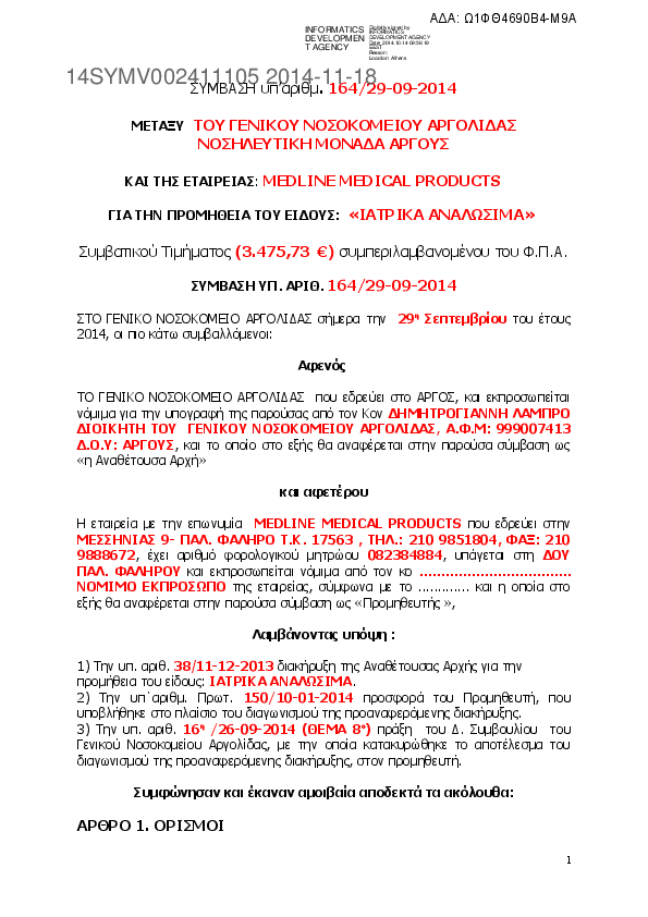 1. ΣΥΜΒΑΣΗ ΙΑΤΡΙΚΑ ΑΝΑΛΩΣΙΜΑ