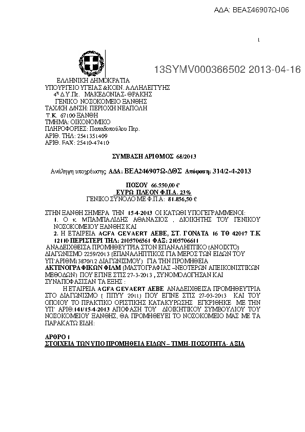 6. Διακήρυξη 2259/2013 προμήθειας Ακτινογραφικών πλακών