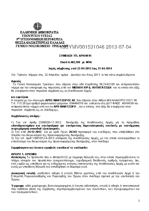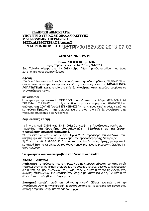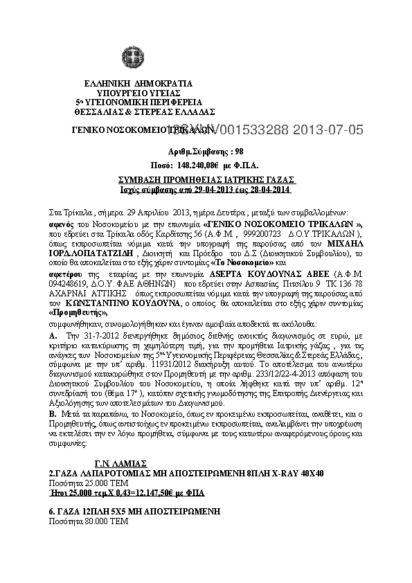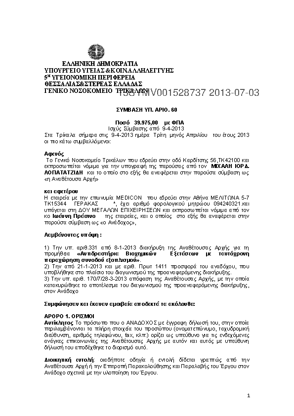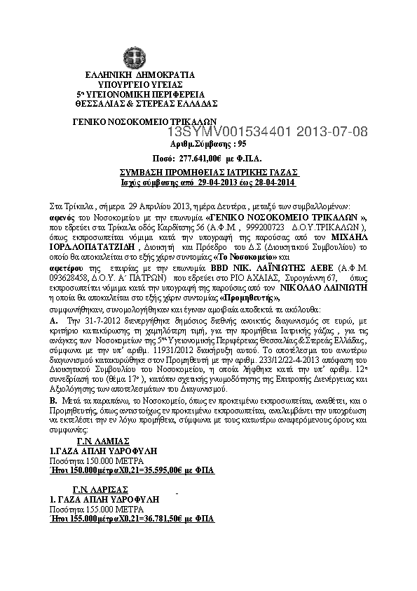 1. ΠΡΟΜΗΘΕΙΑ ΙΑΤΡΙΚΗΣ ΓΑΖΑΣ ΝΟΣΟΚΟΜΕΙΩΝ 5ης ΥΠΕ