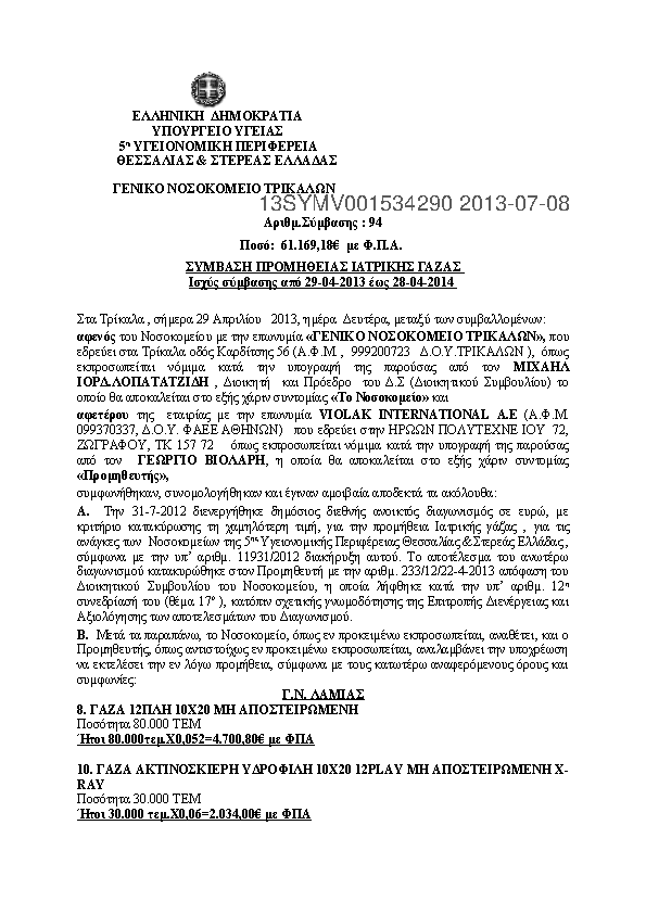 4. ΠΡΟΜΗΘΕΙΑ ΙΑΤΡΙΚΗΣ ΓΑΖΑΣ ΝΟΣΟΚΟΜΕΙΩΝ 5ης ΥΠΕ