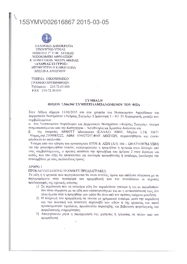 1. ΠΡΟΜΗΘΕΙΑ ΑΝΤΙΔΡΑΣΤΗΡΙΩΝ ΓΙΑ ΤΟ ΟΡΟΔΙΑΓΝΩΣΤΙΚΟ ΤΜΗΜΑ