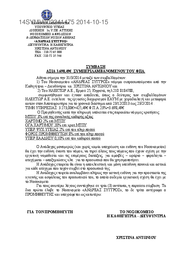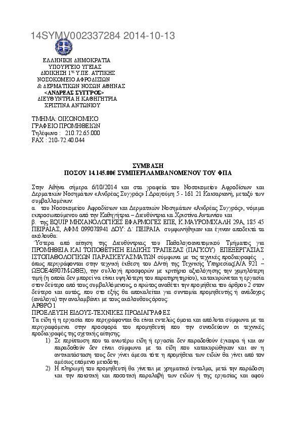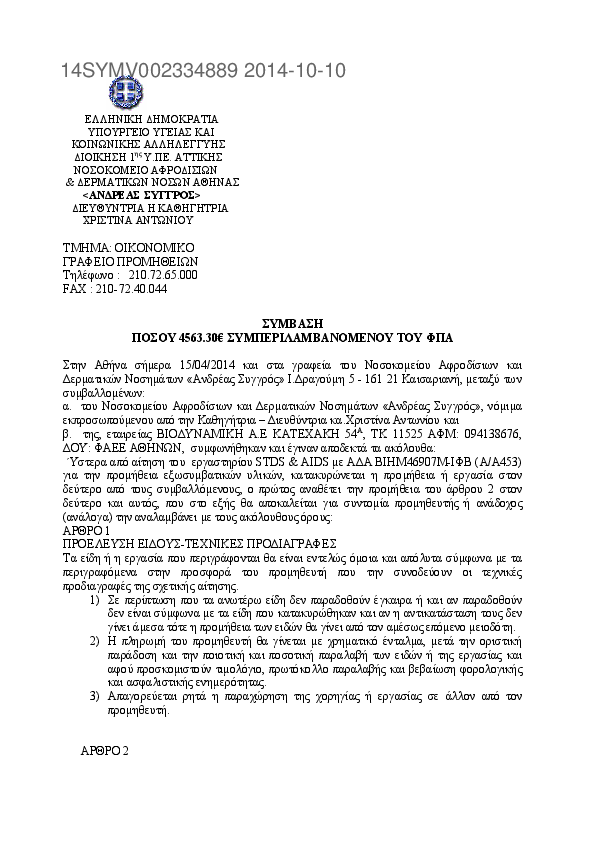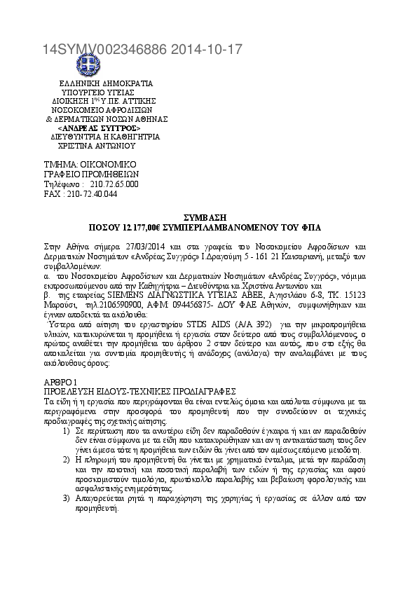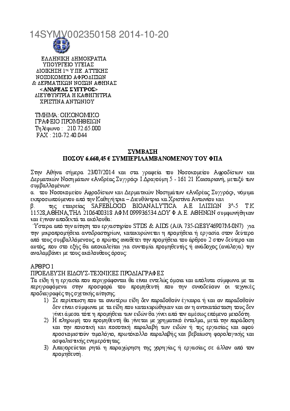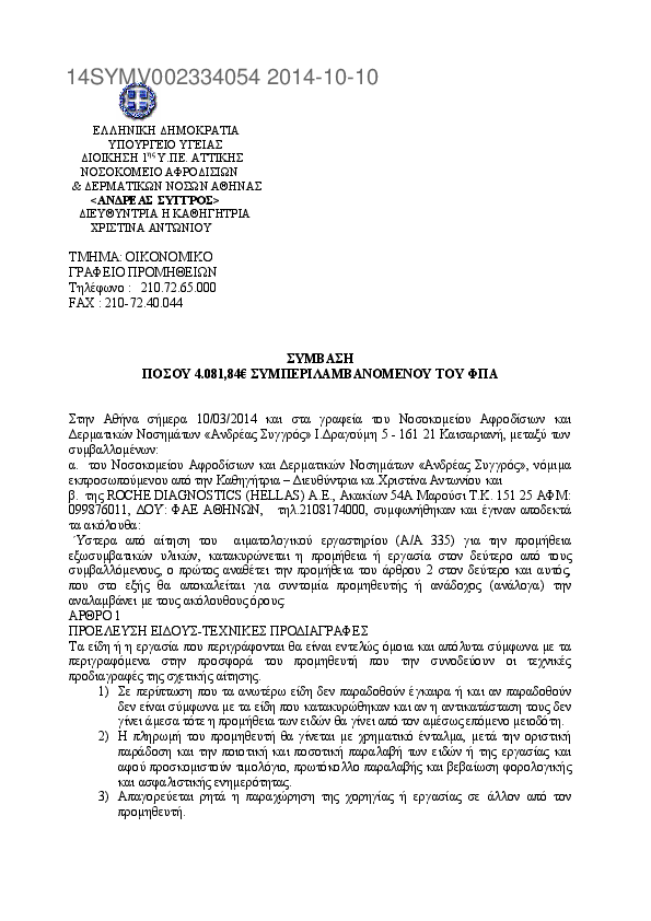 1. ΣΥΜΒΑΣΗ ΓΙΑ ΠΡΟΜΗΘΕΙΑ ΑΝΤΙΔΡΑΣΤΗΡΙΩΝ ΟΡΟΔΙΑΓΝΩΣΤΙΚΟΥ