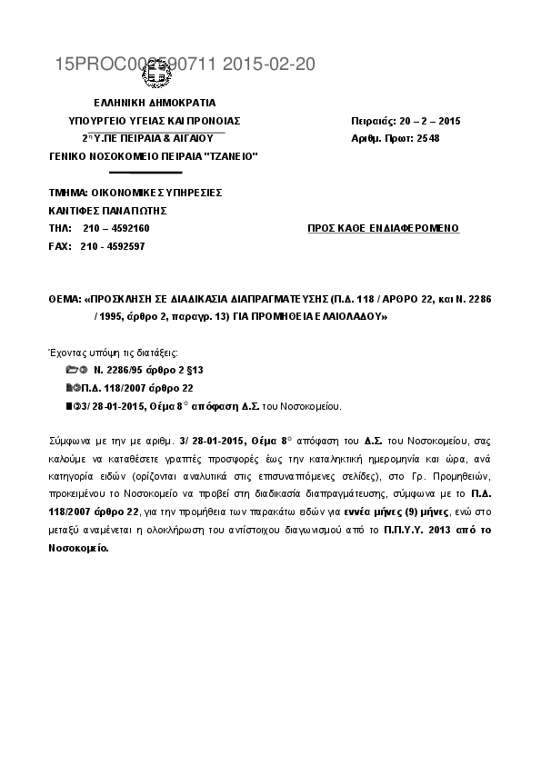 Αναζήτηση σε προκηρύξεις και συμβάσεις για: