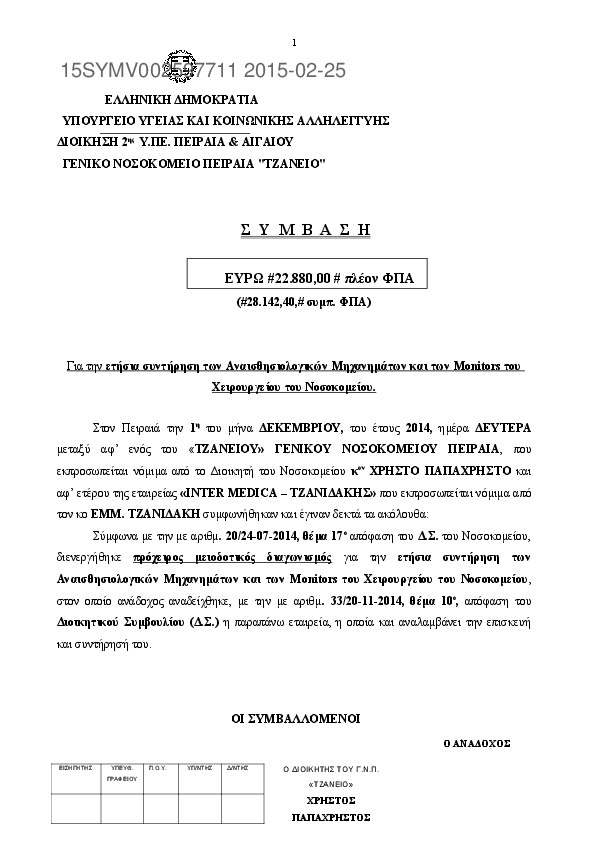 5. ΣΥΜΒΑΣΗ ΕΤΗΣΙΑΣ ΣΥΝΤΗΡΗΣΗΣ ΑΝΑΙΣΘΗΣΙΟΛΟΓΙΚΩΝ ΜΗΧ/ΤΩΝ ΚΑΙ MONITORS ΧΕΙΡΟΥΡΓΕΙΟΥ