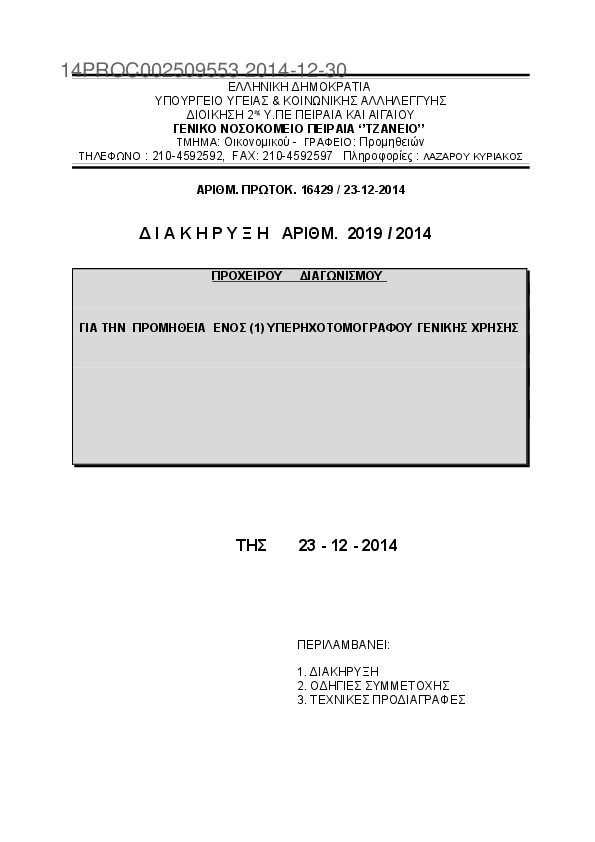 2. ΠΡΟΜΗΘΕΙΑ ΕΝΟΣ(1) ΥΠΕΡΗΧΟΤΟΜΟΓΡΑΦΟΥ ΓΕΝΙΚΗΣ ΧΡΗΣΗΣ