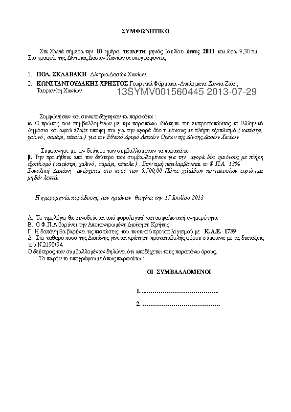 8. ΣΥΜΦΩΝΗΤΙΚΟ ΓΙΑ ΤΗΝ ΑΓΟΡΑ 2 ΗΜΙΟΝΩΝ