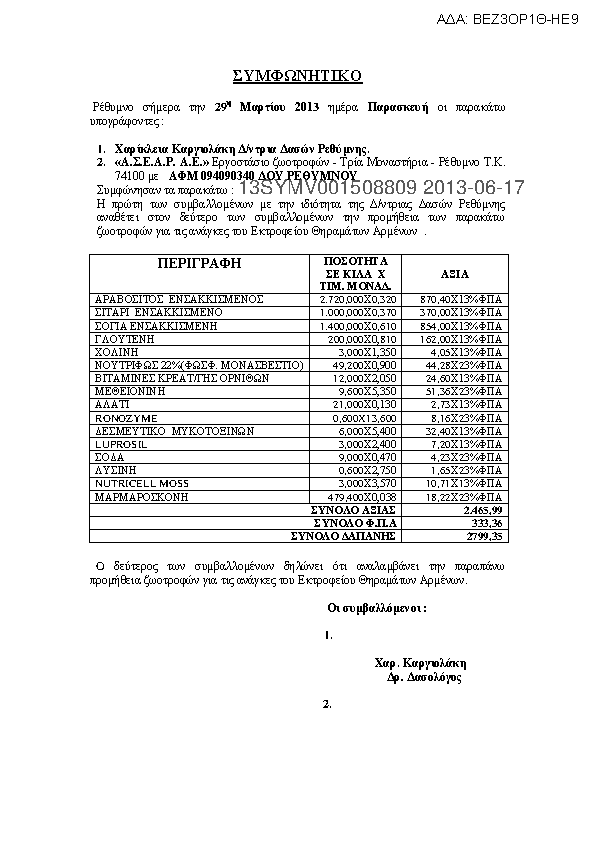 9. ΣΥΜΦΩΝΗΤΙΚΟ ΓΙΑ ΠΡΟΜΗΘΕΙΑ ΖΩΟΤΡΟΦΩΝ