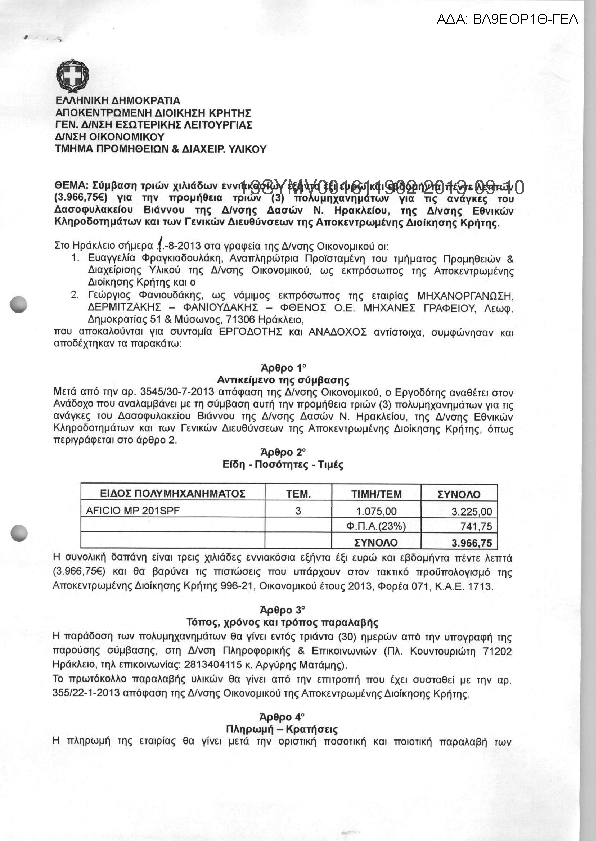 4. Σύμβαση για την προμήθεια τριών (3) πολυμηχανημάτων