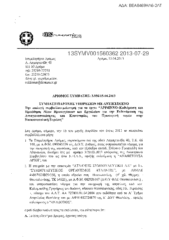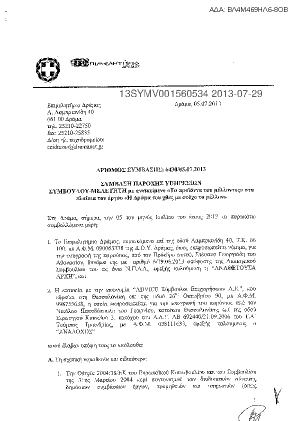 5. ΣΥΜΒΑΣΗ ΠΑΡΟΧΗΣ ΥΠΗΡΕΣΙΩΝ 1ΟΥ ΥΠΟΕΡΓΟΥ "ΙΣΤΟΡΙΚΗ ΑΝΑΔΡΟΜΗ ΣΤΗΝ ΕΠΙΧΕΙΡΗΜΑΤΙΚΟΤΗΤΑ ΤΗΣ ΔΡΑΜΑΣ"