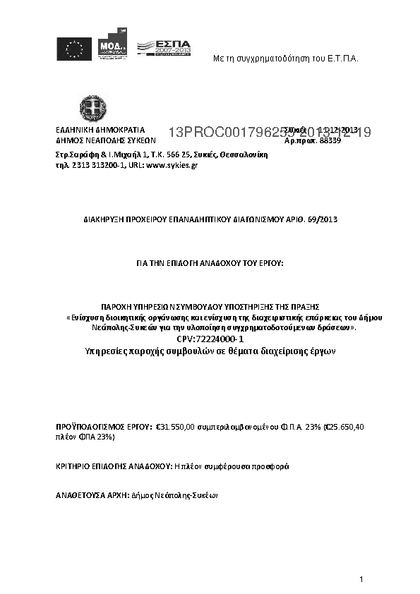 1. Παροχή υπηρεσιών συμβούλου υποστήριξης της πράξης "ενίσχυση διοικ.οργάνωσης και .......δράσεων