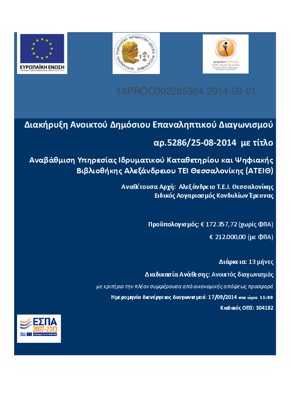 10. Αναβάθμιση Υπηρεσίας Ιδρυματικού Καταθετηρίου και Ψηφιακής Βιβλιοθήκης Αλεξάνδρειου ΤΕΙ Θεσσαλονίκης