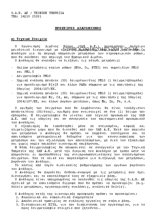 10. Διακήρυξη Πρόχειρου Διαγωνισμού Διεξαγωγής Περιβαλλοντικών Μετρήσεων
