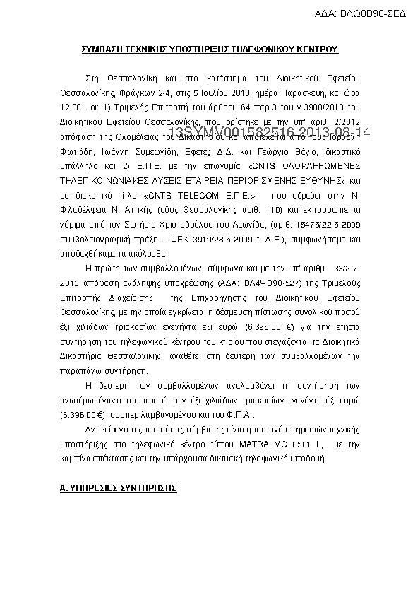 2. Σύμβαση για την ετήσια συντήρηση του τηλεφωνικού κέντρου του κτιρίου των Διοικ. Δικαστ. Θεσσαλονίκης