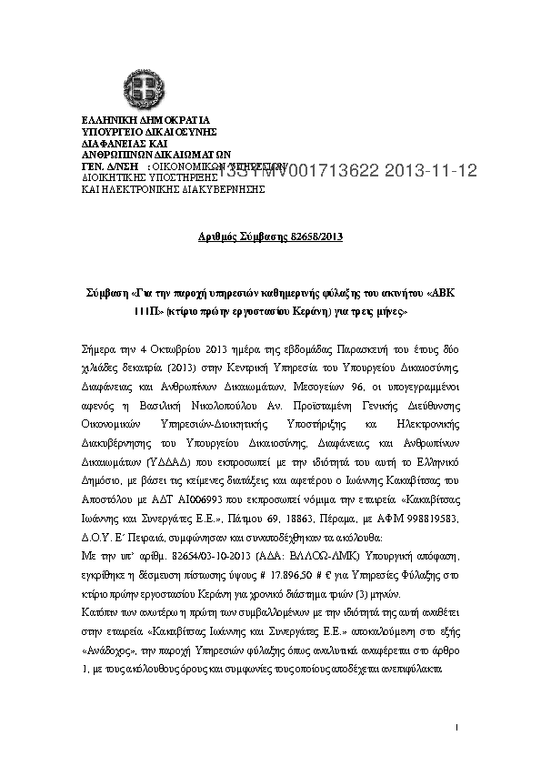 8. Σύμβαση για υπηρεσίες καθημερινής φύλαξης του «ΑΒΚ 111Π» (κτίριο πρώην εργοστ. ΚΕΡΑΝΗ) για 3 μήνες