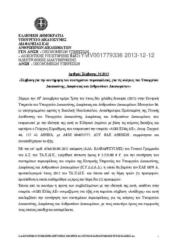 5. Σύμβαση για την συντήρηση των συστημάτων πυρασφάλειας, για τις ανάγκες του ΥΔΔΑΔ