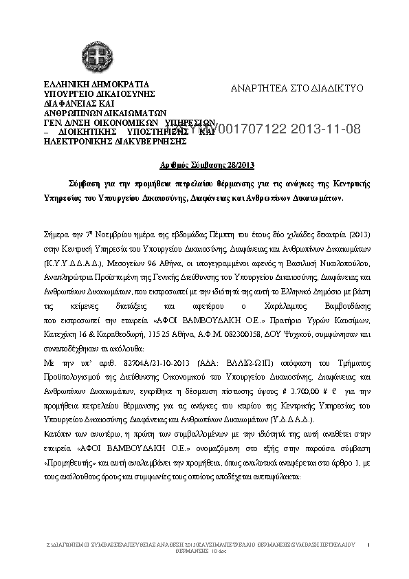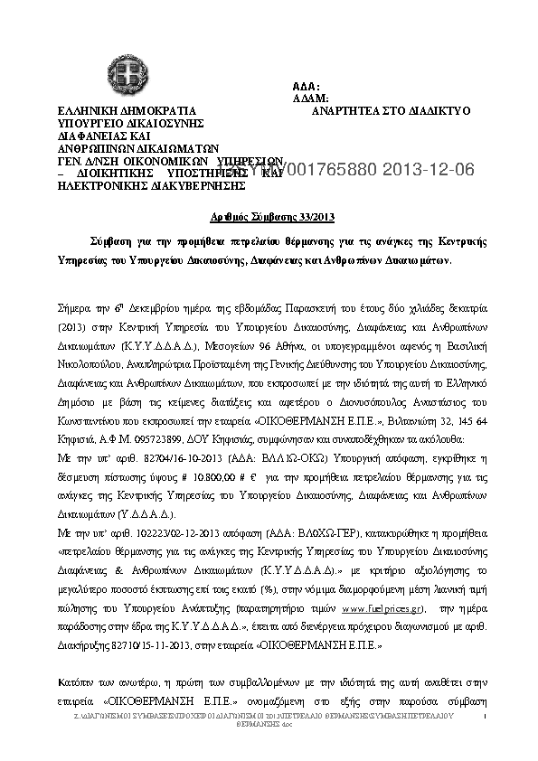 3. Σύμβαση για την προμήθεια πετρελαίου θέρμανσης για τις ανάγκες της ΚΥΥΔΔΑΔ