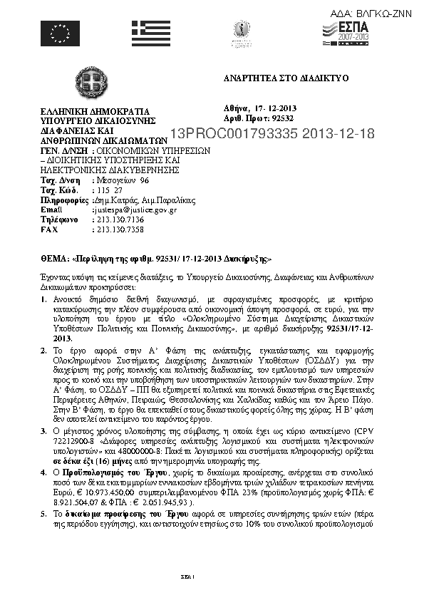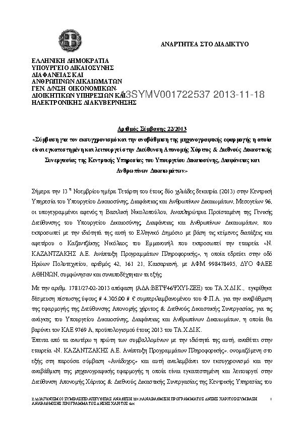 10. Σύμβαση εκσυγχρονισμού & αναβάθμισης S/W στην Δ/νση Απονομής Χάριτος&Διεθνούς Δικαστικής Συνεργασίας