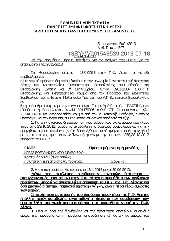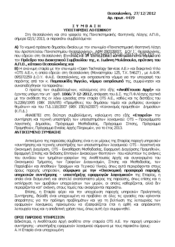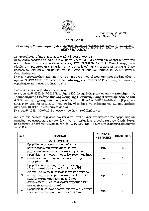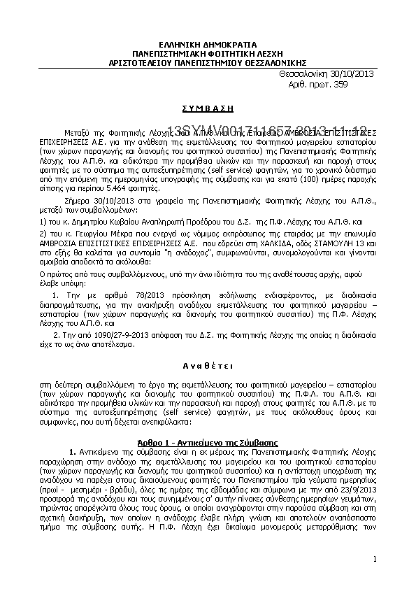 4. Σύμβαση της εκμετάλλευσης του Φοιτητικού μαγειρείου εστιατορίου της Π.Φ.Λ.Θ.