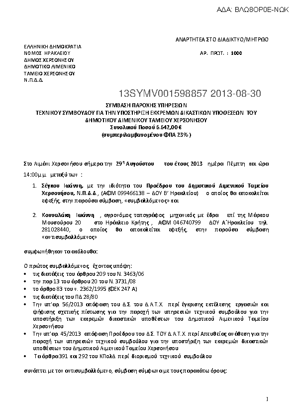 6. ΣΥΜΒΑΣΗ ΠΑΡΟΧΗΣ ΥΠΗΡΕΣΙΩΝ ΤΕΧΝΙΚΟΥ ΣΥΜΒΟΥΛΟΥ ΓΙΑ ΤΗΝ ΥΠΟΣΤΗΡΙΞΗ ΕΚΚΡΕΜΩΝ ΔΙΚΑΣΤΙΚΩΝ ΥΠΟΘΕΣΕΩΝ ΔΛΤΧ