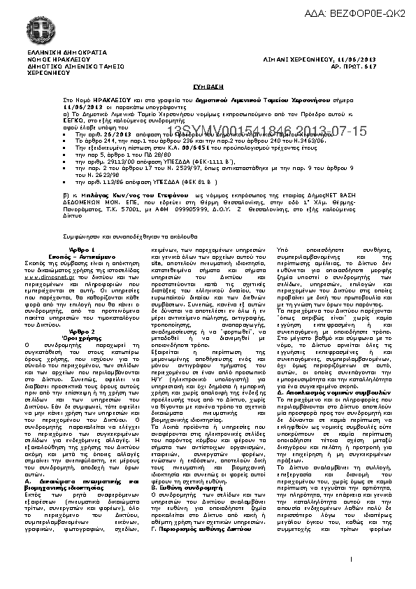 8. ΣΥΜΒΑΣΗ ΕΤΗΣΙΑΣ ΣΥΝΔΡΟΜΗΣ ΔΙΑΔΙΚΤΥΑΚΗΣ ΕΦΑΡΜΟΓΗΣ ΔΗΜΟΣΝΕΤ