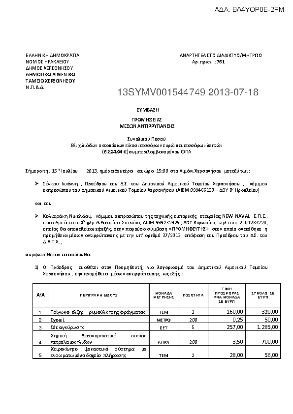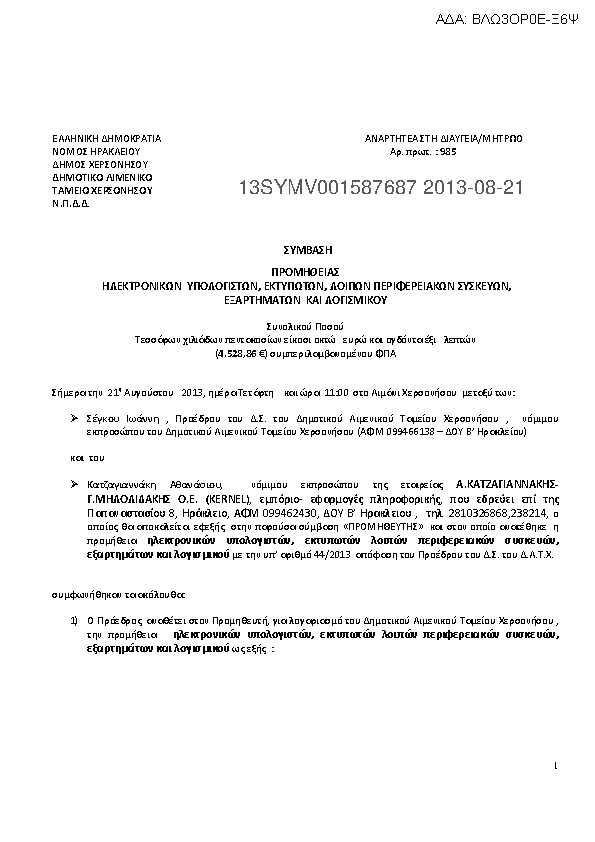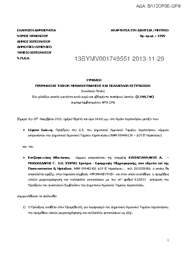 1. ΣΥΜΒΑΣΗ ΠΡΟΜΗΘΕΙΑΣ ΥΛΙΚΩΝ ΜΗΧΑΝΟΓΡΑΦΗΣΗΣ ΚΑΙ ΠΟΛΛΑΠΛΩΝ ΕΚΤΥΠΩΣΕΩΝ