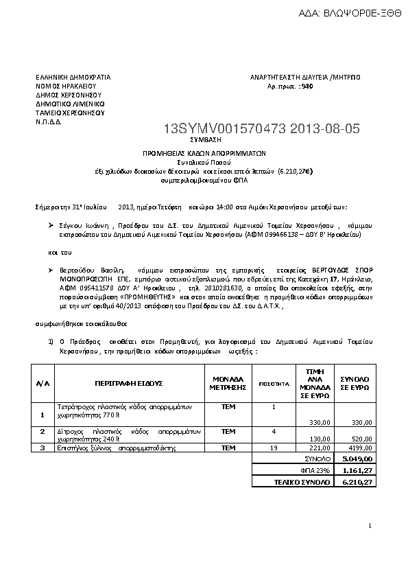 5. ΣΥΜΒΑΣΗ ΠΡΟΜΗΘΕΙΑΣ ΚΑΔΩΝ ΑΠΟΡΡΙΜΜΑΤΩΝ