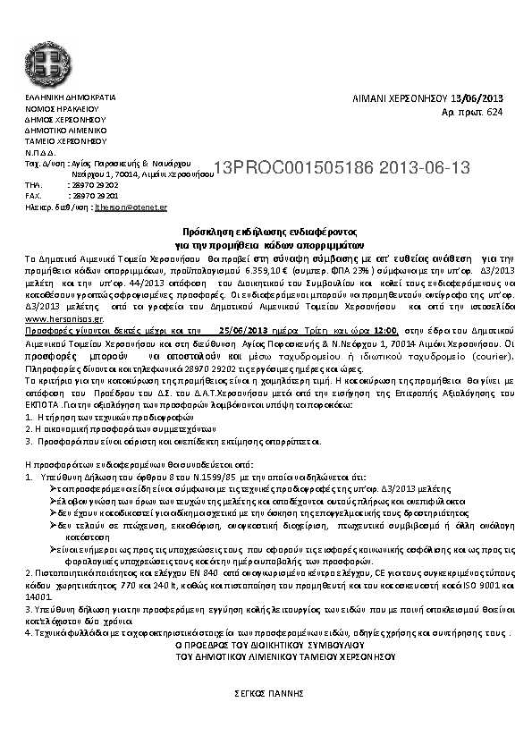 3. ΠΡΟΚΣΛΗΣΗ ΥΠΟΒΟΛΗΣ ΠΡΟΣΦΟΡΩΝ ΚΑΔΩΝ ΑΠΙΟΡΡΙΜΜΑΤΩΝ