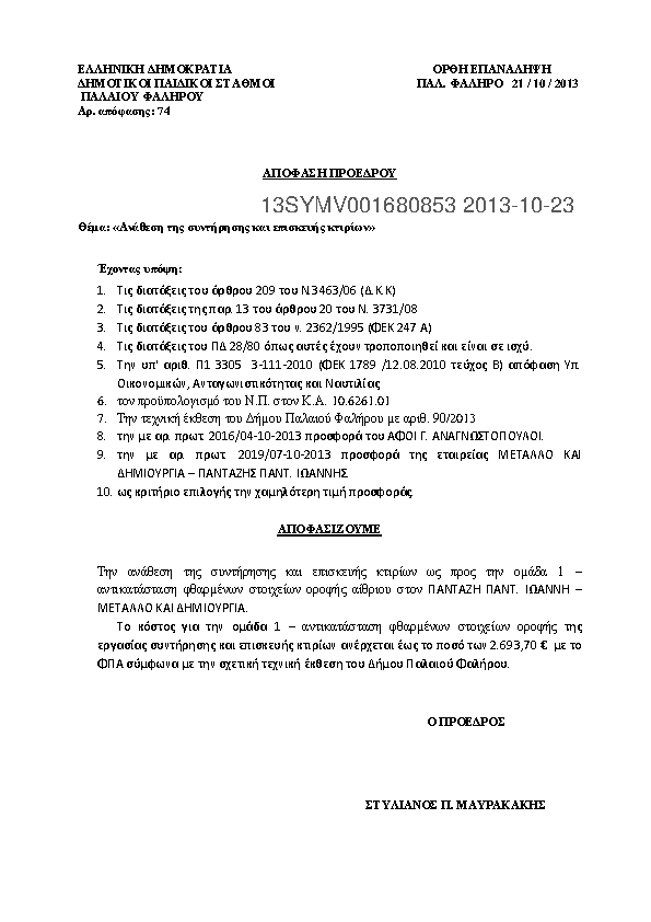 Αναζήτηση σε προκηρύξεις και συμβάσεις για: