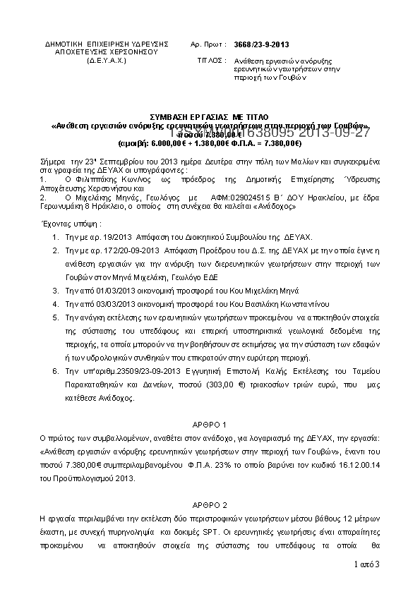 8. ΣΥΝΒΑΣΗ ΑΝΑΘΕΣΗΣ ΕΡΓΑΣΙΩΝ ΑΝΟΡΥΞΗΣ ΕΡΕΥΝΗΤΙΚΩΝ ΓΕΩΤΡΗΣΕΩΝ ΣΤΗΝ ΠΕΡΙΟΧΗ ΓΟΥΒΩΝ