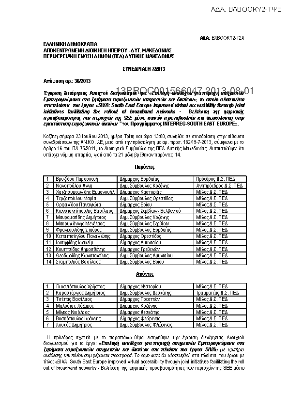 2. Έγκριση διενέργειας Ανοιχτού διαγωνισμού για: «Επιλογή αναδόχου για παροχή υπηρεσιών Εμπειρογνώμονα στα ζητήματα ευρυζωνικών υπηρεσιών και δικτύων», το οποίο υλοποιείται στα πλαίσια του έργου «SIVA: South East Europe improved virtual acc...