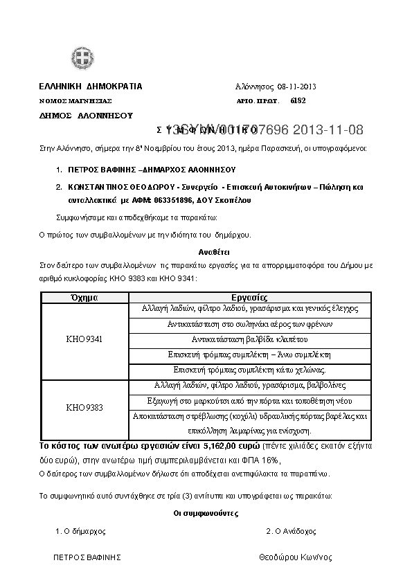 2. Σύμβαση για την εκτέλεση του έργου "ΣΥΝΤΗΡΗΣΗ