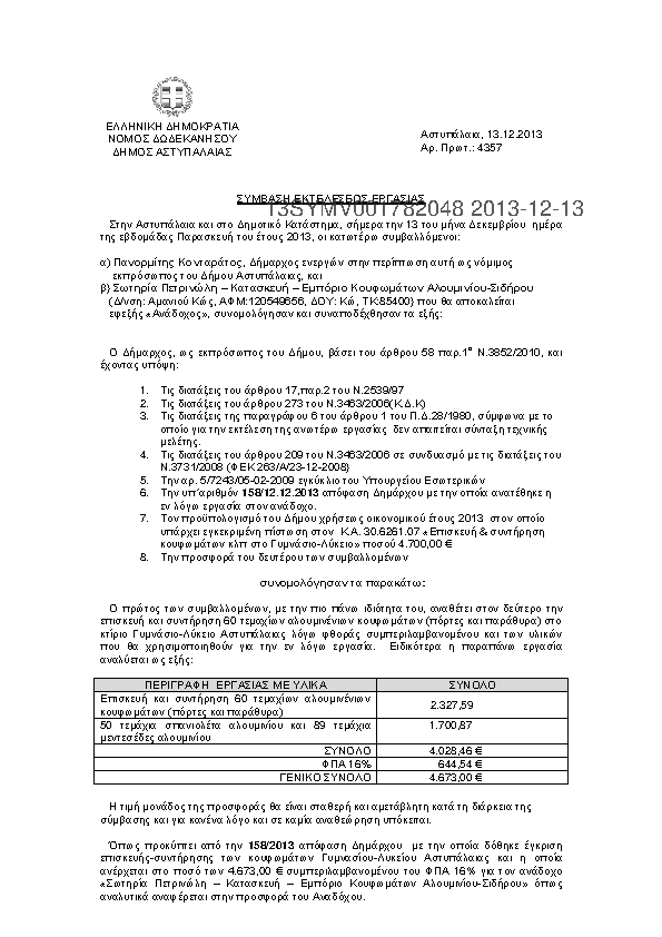 1. ΑΠΟΦΑΣΗ ΔΗΜΑΡΧΟΥ ΜΕ ΘΕΜΑ: Διενέργεια πρόχειρου διαγωνισμού για την υλοποίηση της δράσης: «Προβολή και προώθηση των συγκριτικών πλεονεκτημάτων της περιοχής νήσου Αστυπάλαιας, από το Δήμο Αστυπάλαιας»