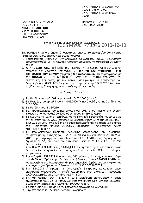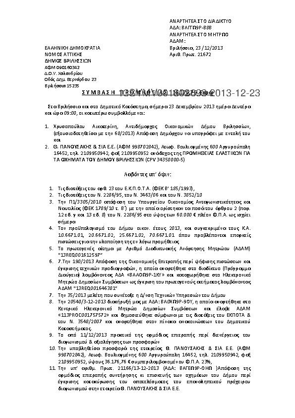 7. ΣΥΜΒΑΣΗ ΠΡΟΜΗΘΕΙΑΣ ΕΛΑΣΤΙΚΩΝ ΓΙΑ ΤΑ ΟΧΗΜΑΤΑ ΤΟΥ ΔΗΜΟΥ ΒΡΙΛΗΣΣΙΩΝ
