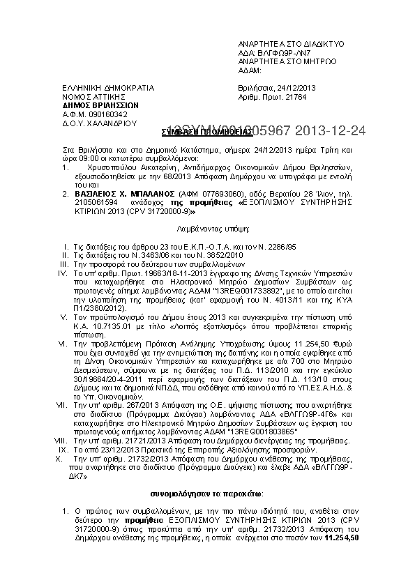 3. Σύμβαση προμήθειας εξοπλισμού συντήρησης κτιρίων