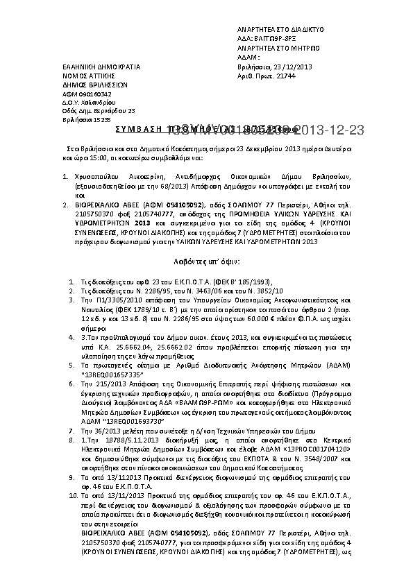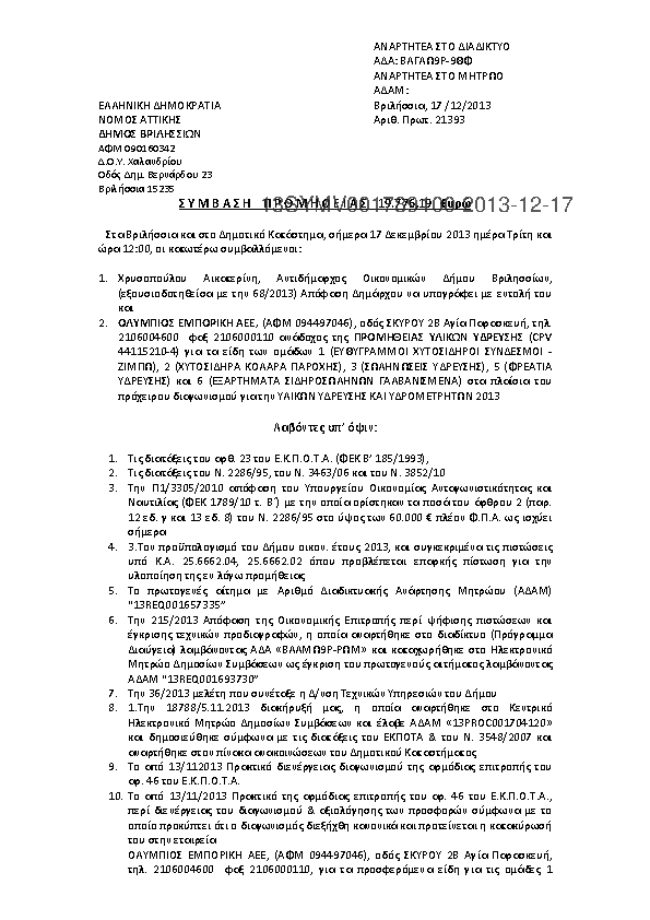 4. Σύμβαση προμήθειας ΥΛΙΚΩΝ ΥΔΡΕΥΣΗΣ ΚΑΙ ΥΔΡΟΜΕΤΡΗΤΩΝ 2013